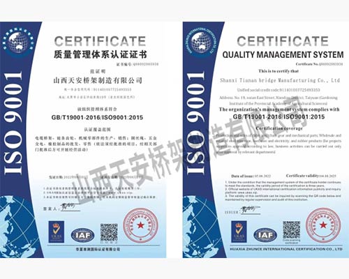 山西天安橋架制造有限公司是一家生產(chǎn)電纜橋架、母線(xiàn)槽的大型廠家,主要生產(chǎn):槽式橋架、托盤(pán)式橋架、梯級(jí)式橋架、大跨距橋架、母線(xiàn)槽有空氣型、密集型、耐火型、鋁合金等以及通風(fēng)管、可根據(jù)客戶(hù)要求定制各種型號(hào)各種規(guī)格,表面處理有熱鍍鋅、防火噴塑、防火漆、熱鍍鋅等,產(chǎn)品廣泛應(yīng)用于石油、化工、治金、電力、紡織、通訊、高層建筑等各個(gè)領(lǐng)域。產(chǎn)品具有外形美觀,耐腐蝕性強(qiáng),安裝靈活方便,品種齊全等特點(diǎn)。